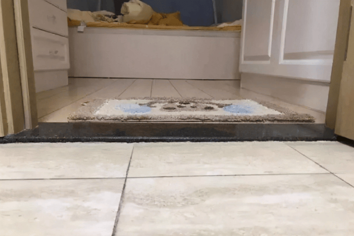 若门槛石为异形时,再量宽度,所以门槛石的宽度就需要加上贴瓷砖的厚度。